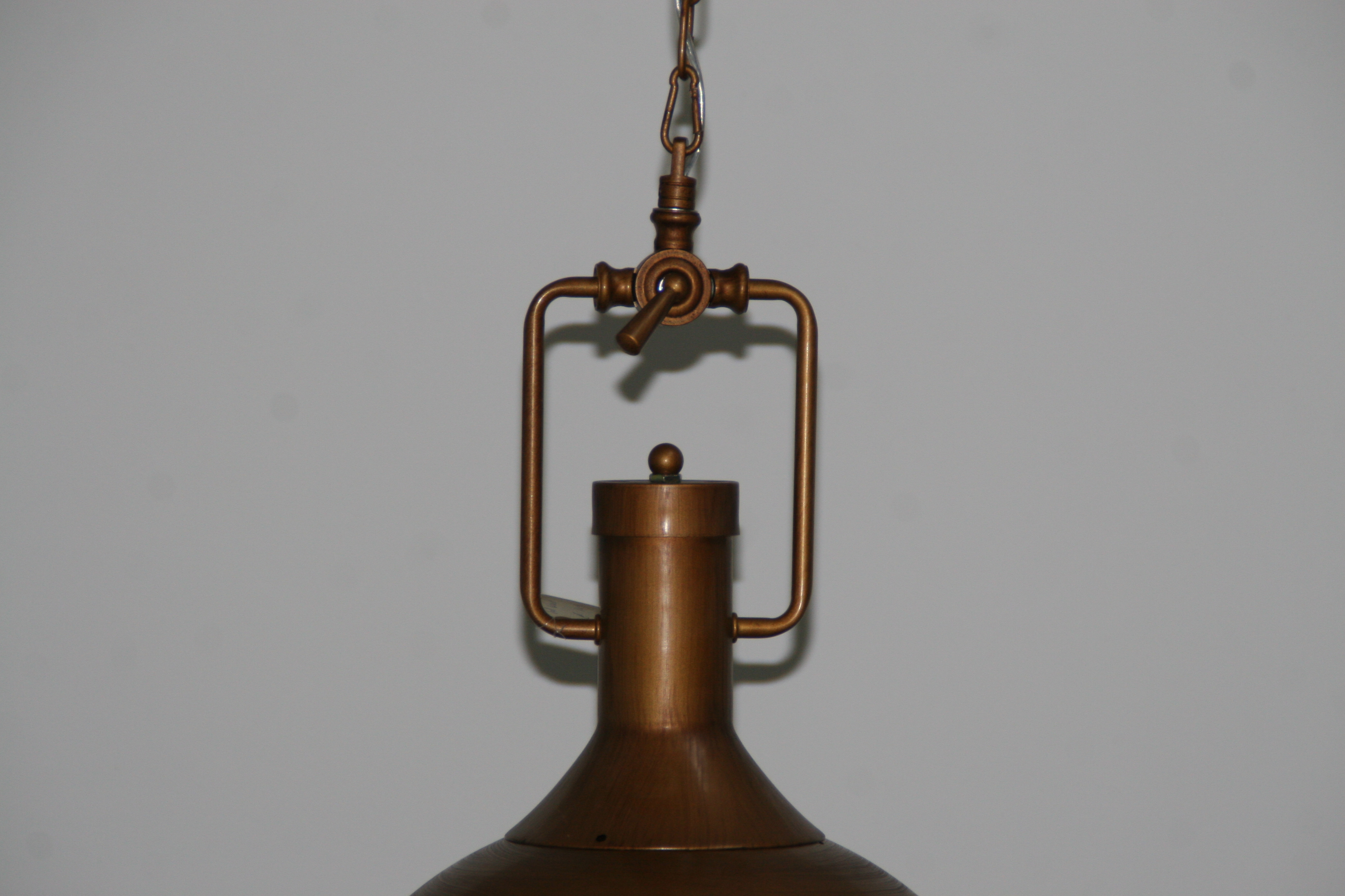 85002-45, hanglamp vintage hout/brons look, dia 45cm, hoogte 50 cm…150 cm, 1 x e27 max 60w, met glasplaat aan de onderkant.